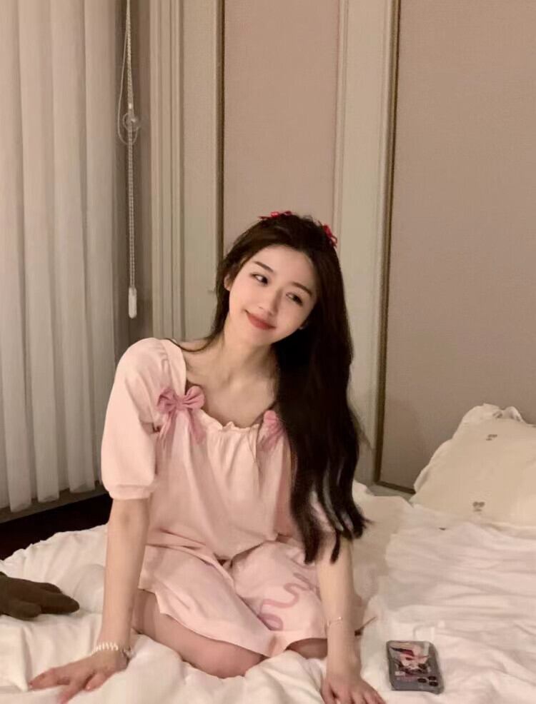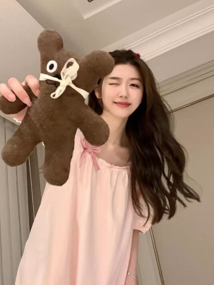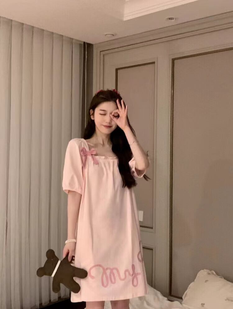 可愛らしいピンクのワンピースルームウェアが登場です!胸元のサイドにあしらったリボンが、プリンセスのような華やかさを演出。リラックスした時間を特別なものにしてくれます。