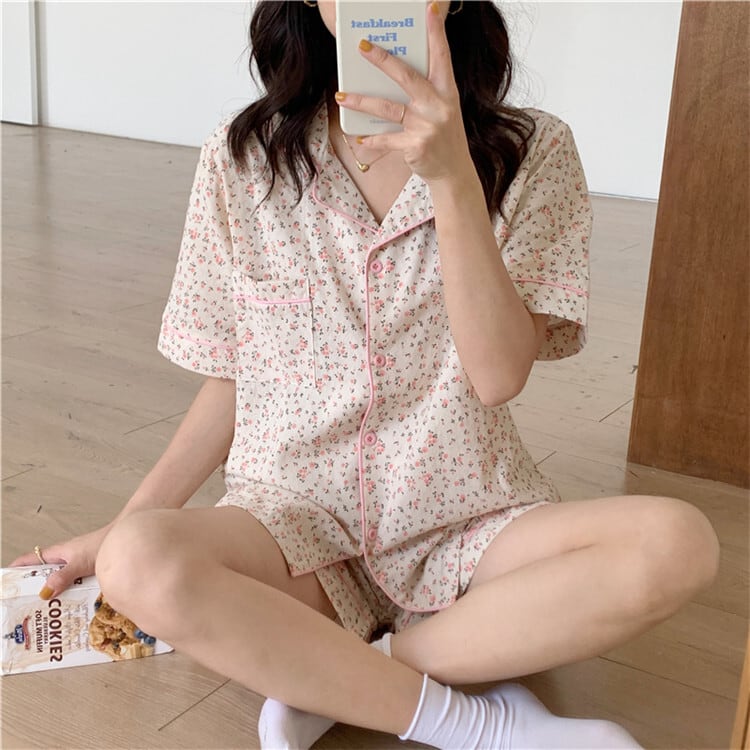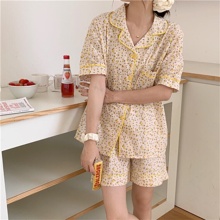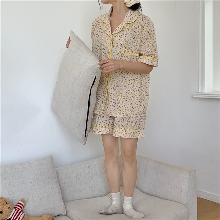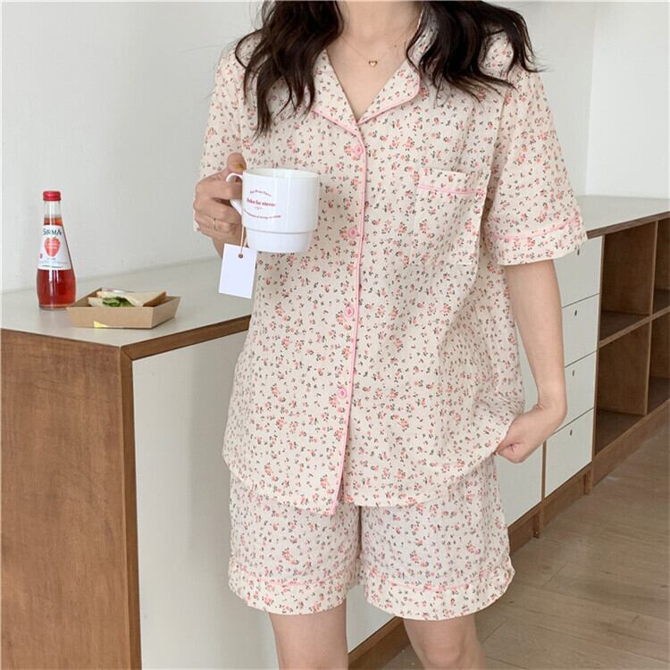 かわいらしい小花柄が特徴的な夏用ルームウェアです。このアイテムは、軽やかで快適なデザインが施されており、暑い季節にぴったりなリラックスタイムを楽しむことができます。おうちでのんびり過ごす時や、友人とのカジュアルな集まりにも最適です!