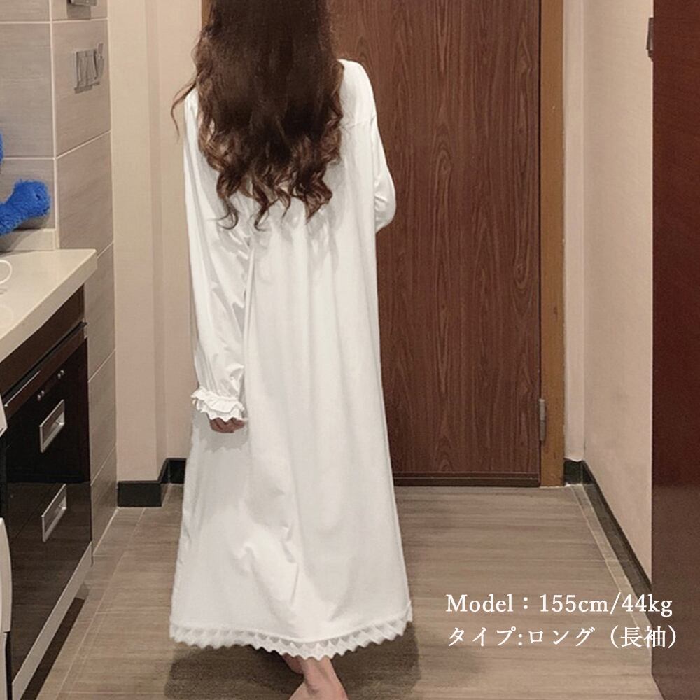 リラックス感と女性らしさを兼ね備えたパジャマワンピース。