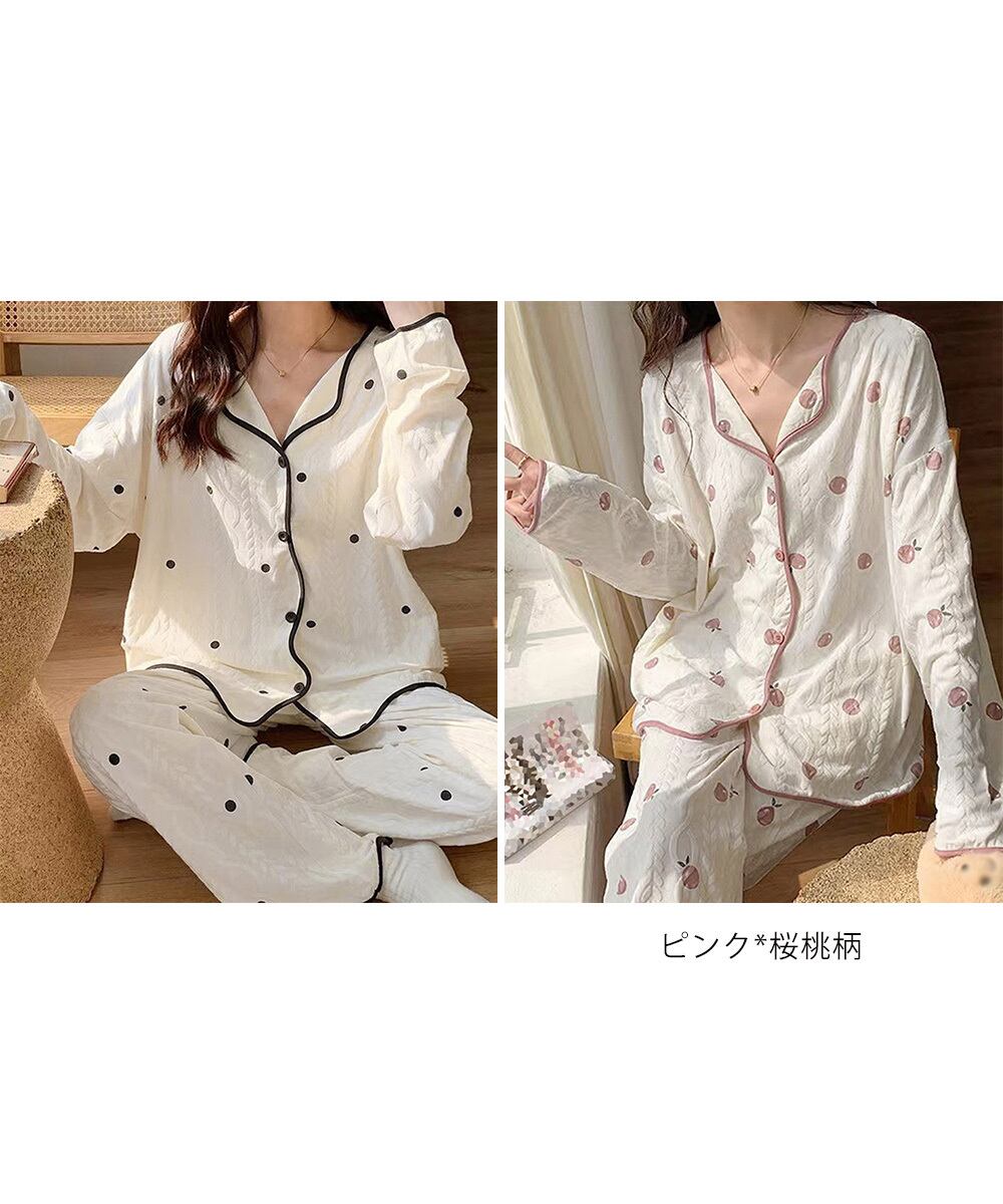お泊まりや女子会にもぴったりで、春秋冬のリラックスタイムを彩る万能パジャマセットです。