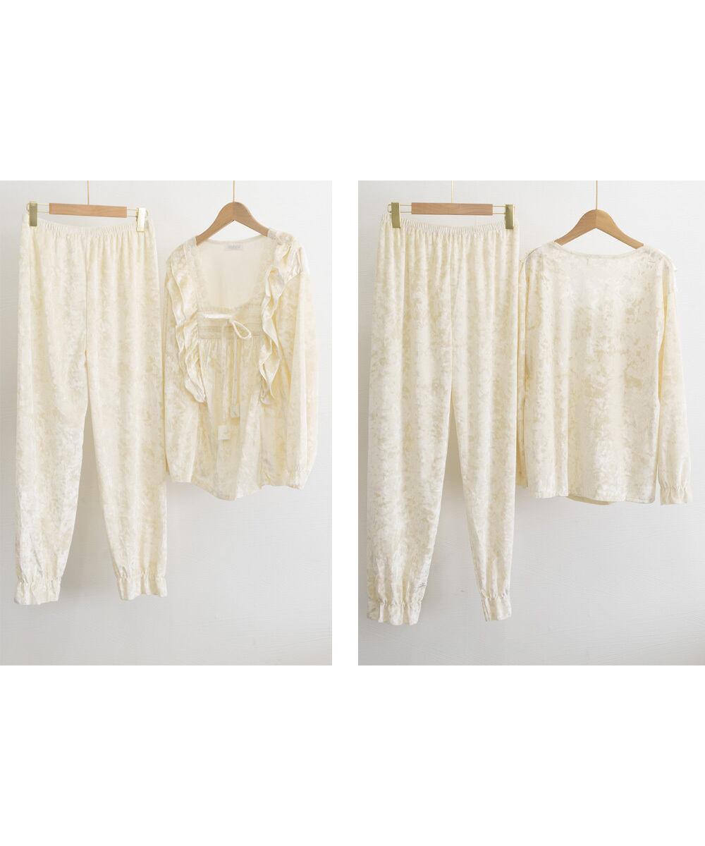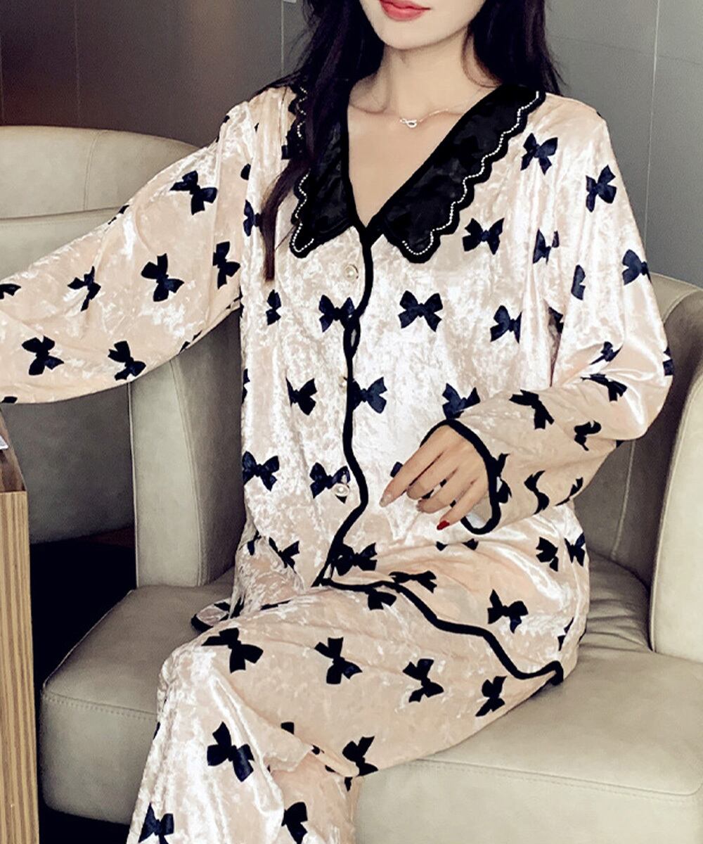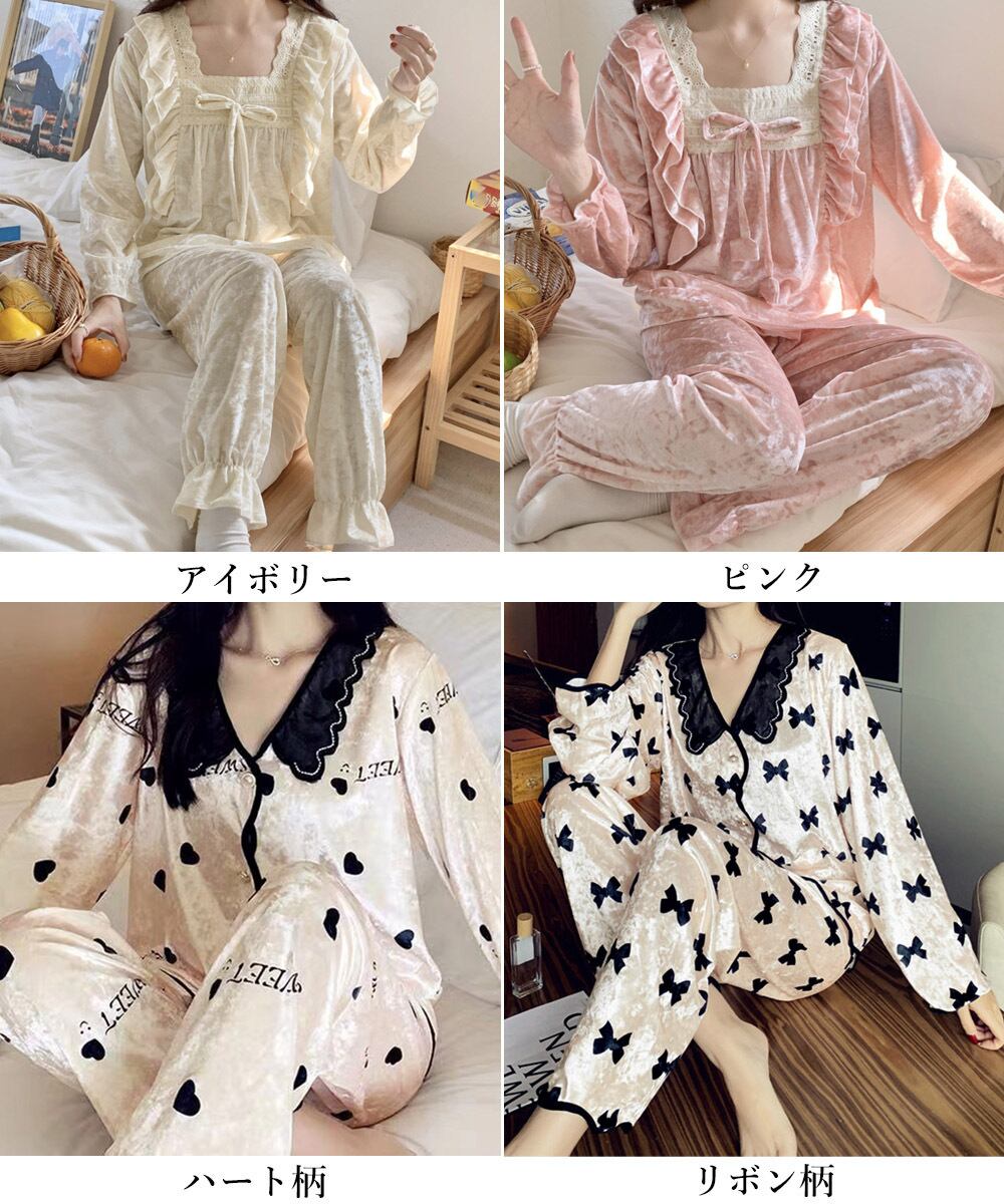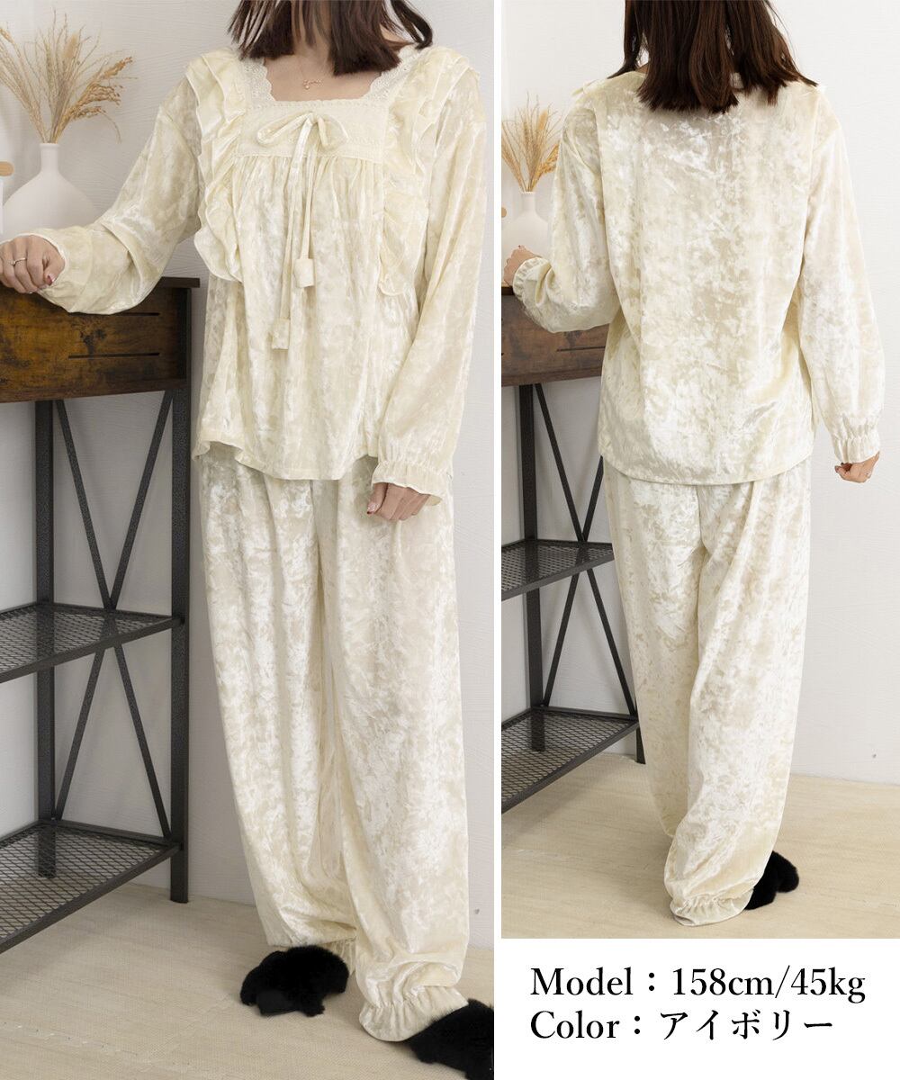 上品な光沢感が魅力のベロア調ルームウェアセット。