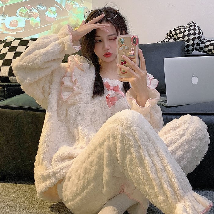可愛いフリル リボン ランネルパジャマ