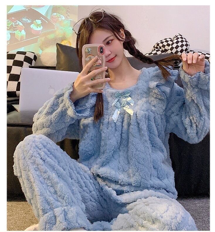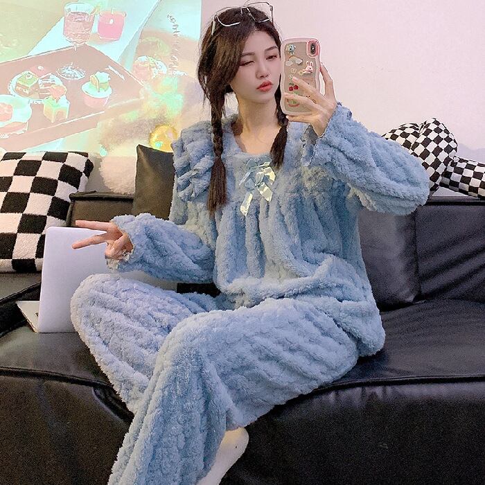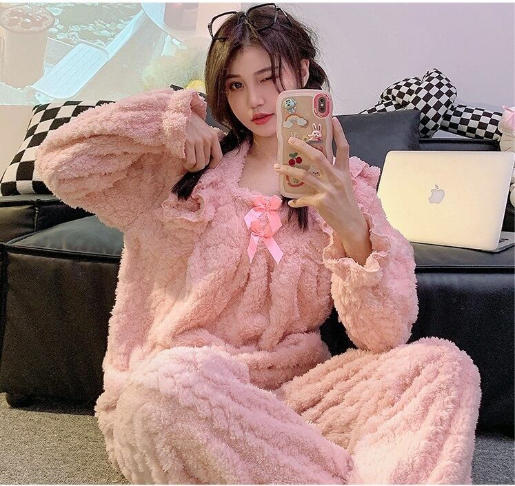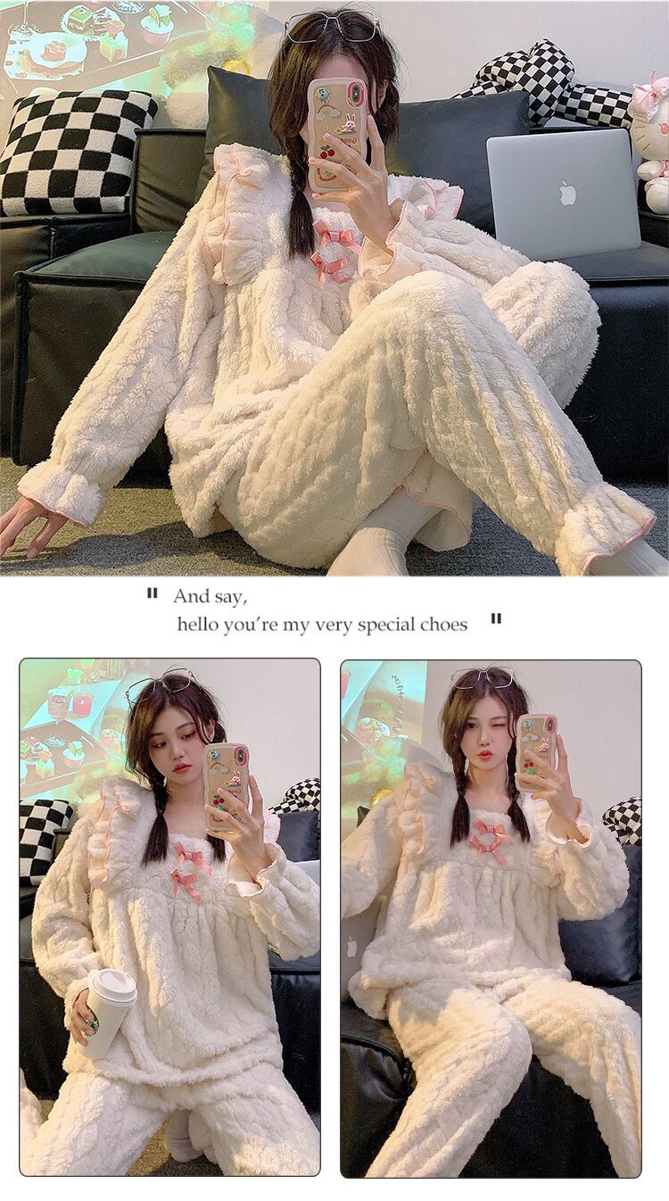 心も温まる「可愛いフリル リボン ランネルパジャマ」で、極上のリラックスタイムをお楽しみください。ふんわりとしたフランネル素材が体を包み込み、秋冬の寒さからしっかり守ってくれる実用的なアイテムです。愛らしいフリルとリボンのデザインが、可愛らしさを引き立て、お部屋でのくつろぎ時間やしっかりとした眠りをサポートします。このパジャマを身につけることで、毎日のナイトルーチンがより特別なひとときになるでしょう!