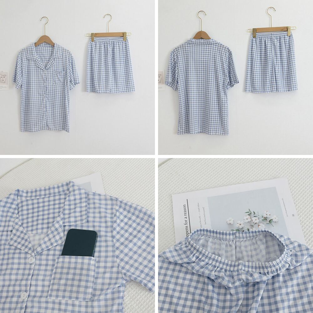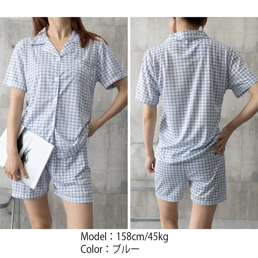 さらっと軽やかな綿混生地に、定番のチェック柄を合わせた大人女子にぴったりの上下2点セット。
