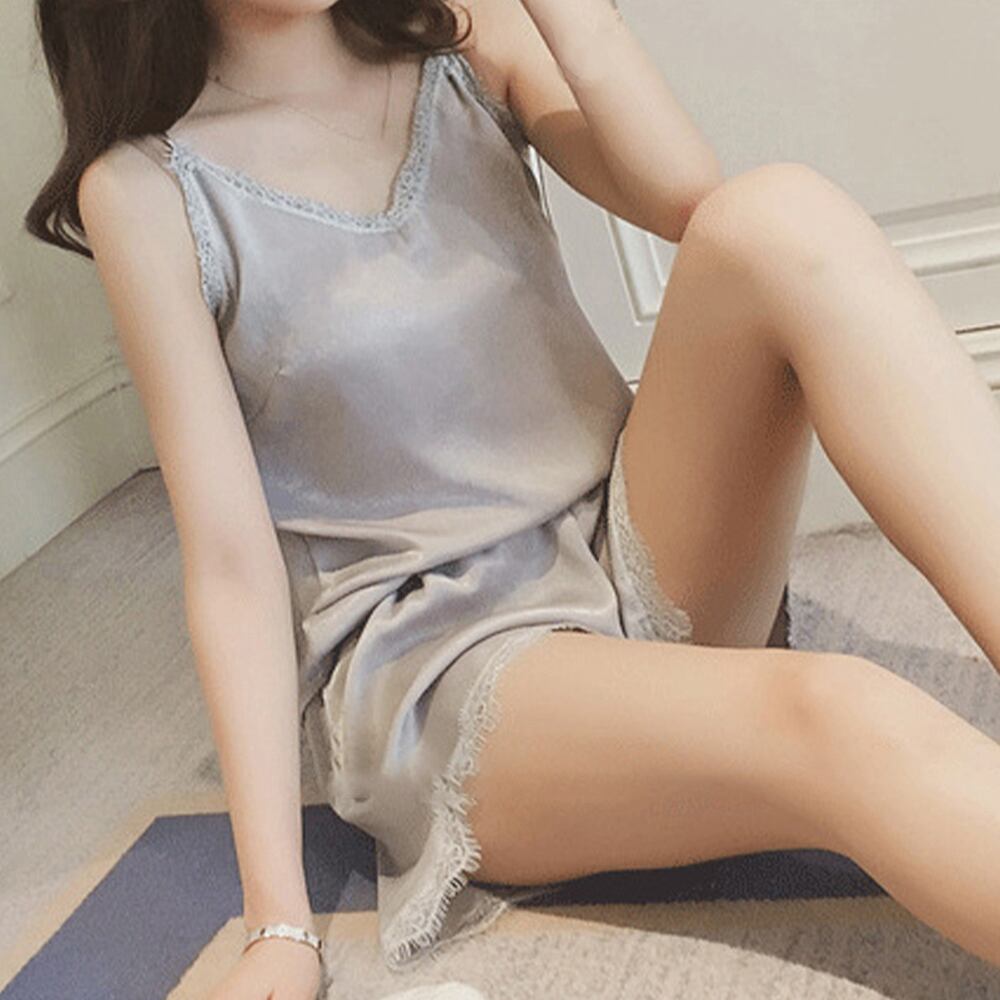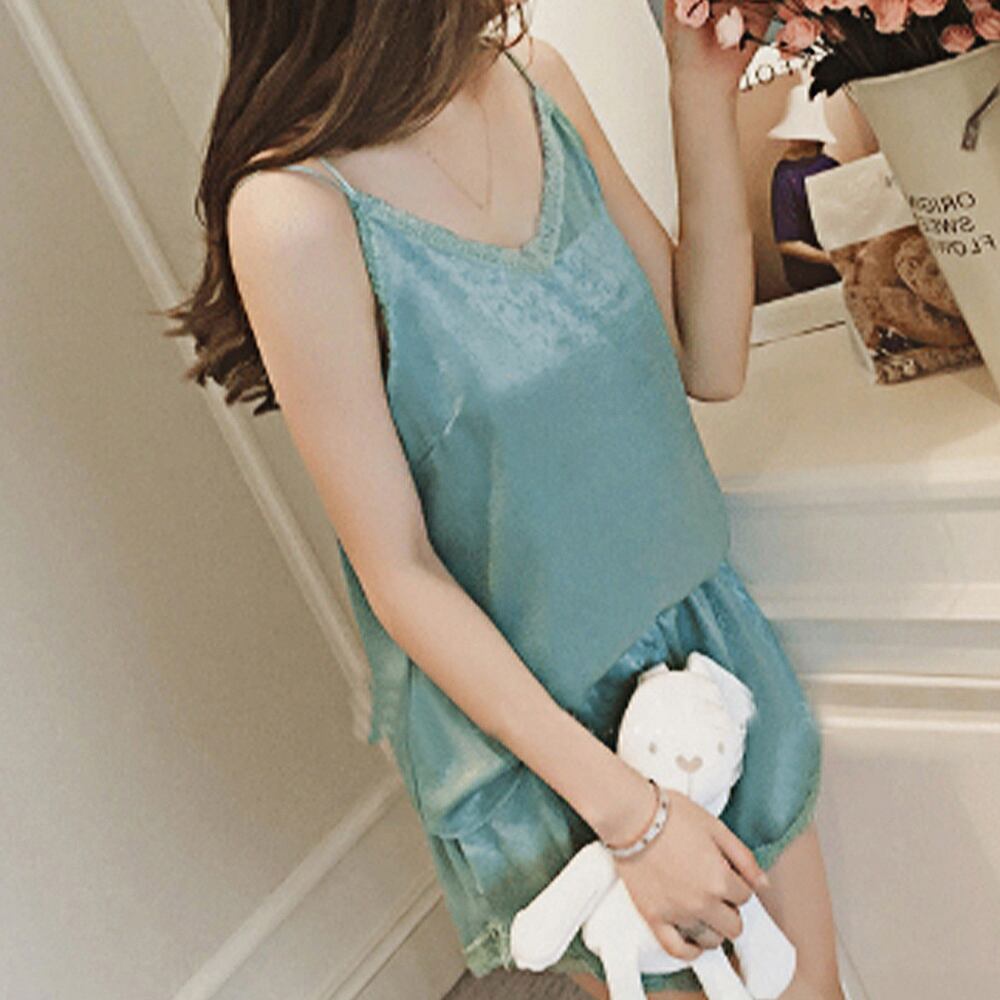 肌触りのよい、なめらかなシルキータッチ素材が心地いいキャミソール×ショートパンツのルームウェアセット。