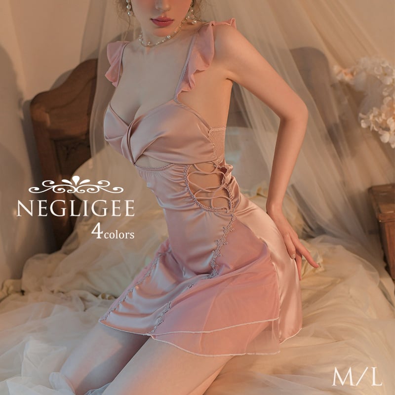 肩紐のフリルや大きく開いたバックデザイン、レース使いが大人フェミニンでセクシーな雰囲気を演出。