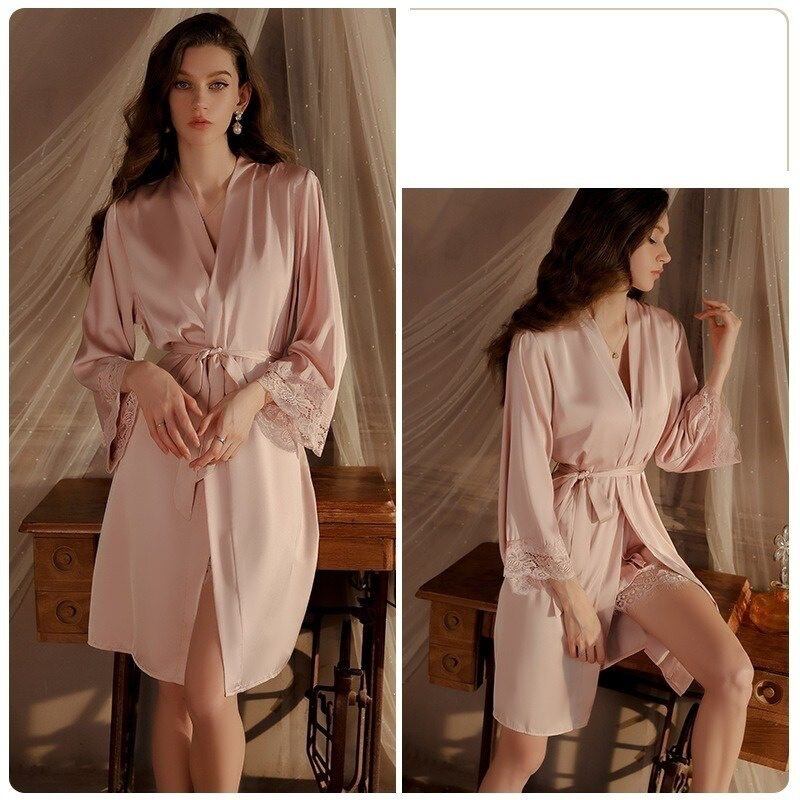 ネグリジェはシンプルでありながら美しいシルエットを描き、ガウンは軽やかに羽織ることで、自宅での特別なムードを演出します。どちらも快適な着心地で、くつろぎタイムや夜のリラックスに最適です。