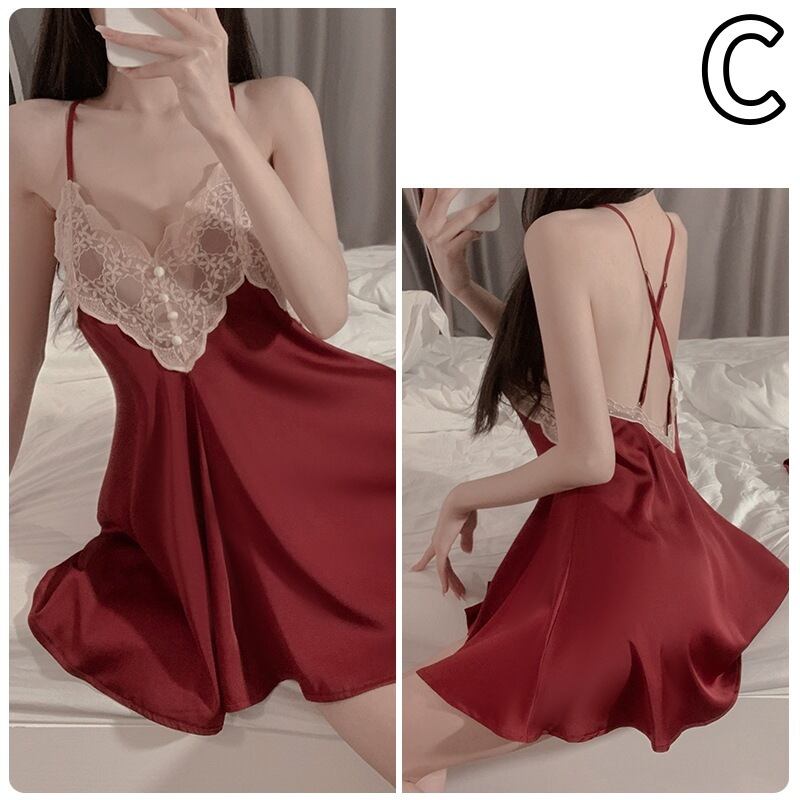 ツヤかわサテン キャミネグリジェ ルームワンピース ナイトウェア