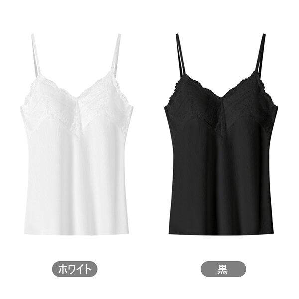 ネックラインにレースをあしらった、フェミニンな印象のブラキャミ。サラサラと軽い着心地のリブ生地を使用し、快適なフィット感を叶えます。
