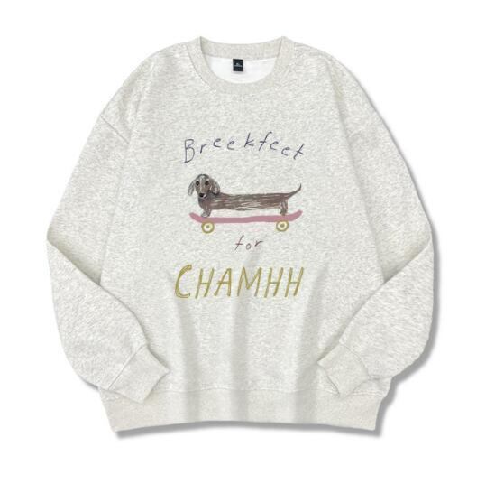 柔らかく暖かい裏起毛素材を使用したルームウェアトップスです。愛らしいダックスフントのスケートボードプリントがポイントで、おうち時間やリラックスタイムにぴったり。ゆったりとしたシルエットで着心地も快適。スカートやパンツと合わせて、カジュアルに楽しめます。
